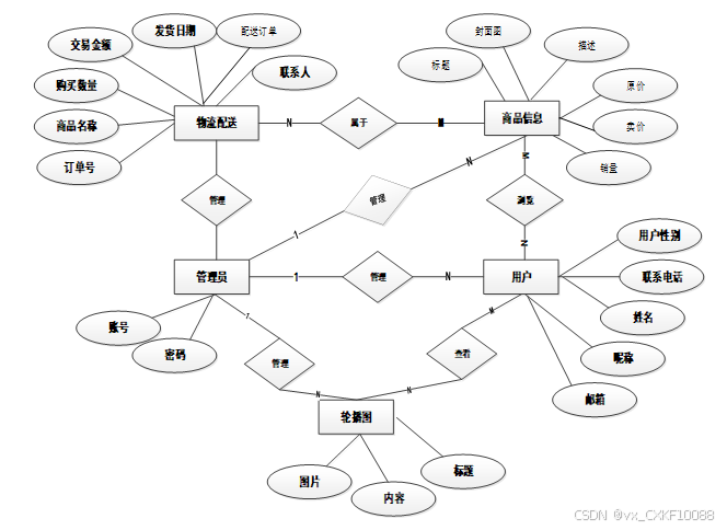 对于一个要开发的系统来说,E-R图可以让别人能更快更轻松的了解此系统的事务及它们之间的关系。根据系统分析阶段所得出的结论确定了在校园外卖管理系统中存在着多个实体。