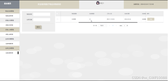 (8)出库申请管理:管理员点击可查看出库申请列表和出库审核。