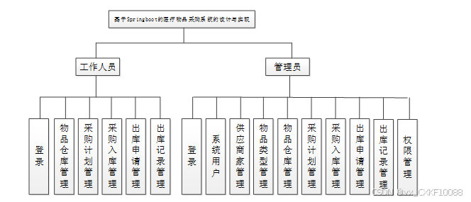 医疗物品采购系统从角色上划分为了工作人员以及管理员两种角色。