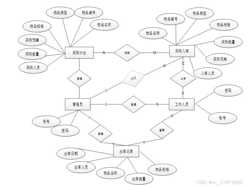 图3.2 医疗物品采购系统总E-R关系图