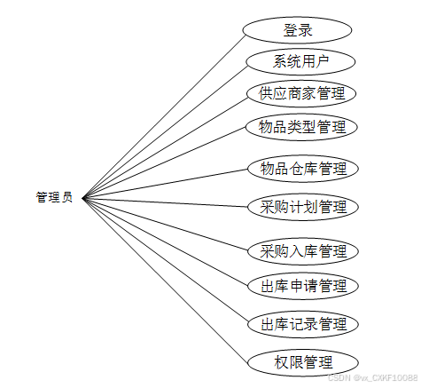 图2.2 医疗物品采购系统管理员角色用例图