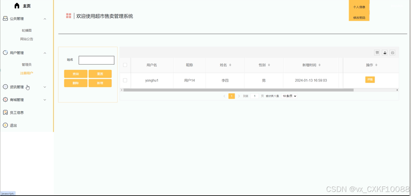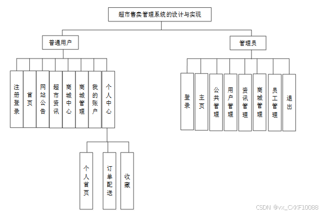 按照 超市售卖管理系统的角色,我划分为了注册用户管理模块和管理员管理模块这两大部分。