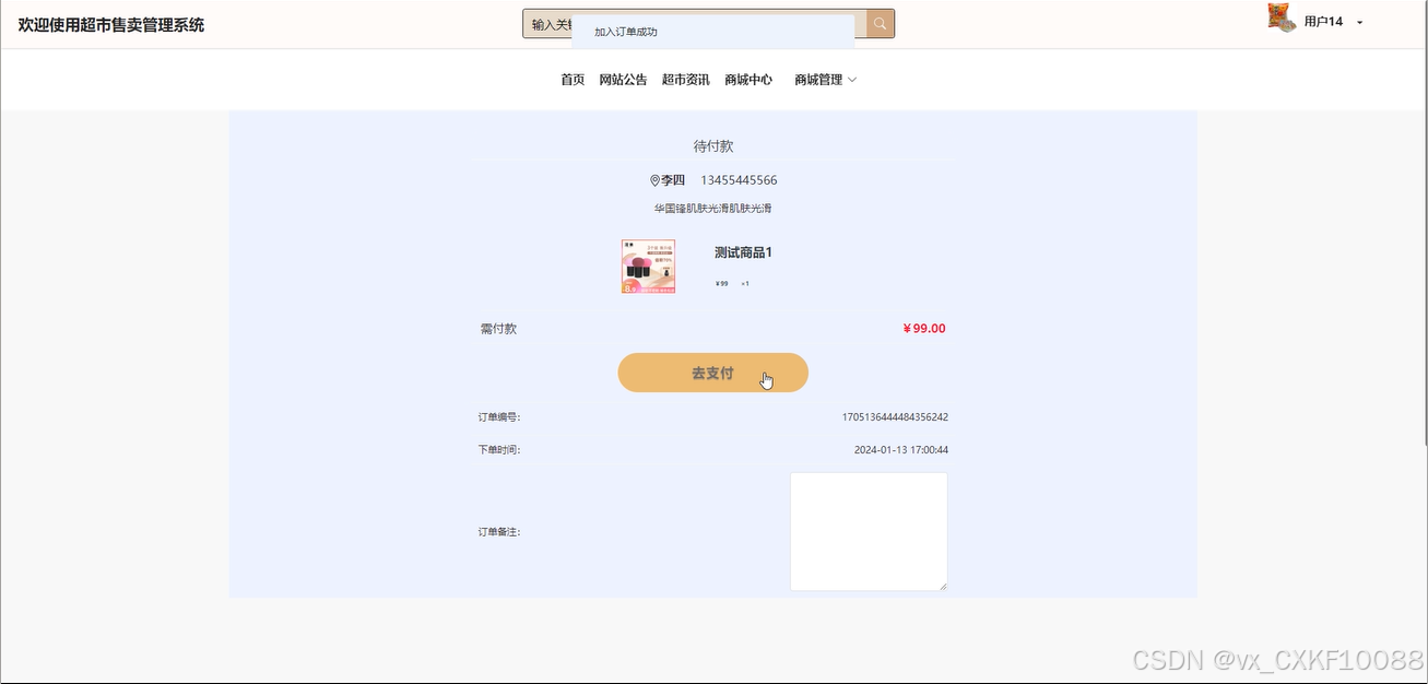 (5)商城管理:在商城管理功能中,注册用户可以管理自己的购物车,查看订单状态和详情,管理收货地址信息,实现便捷的购物管理和订单跟踪功能。
