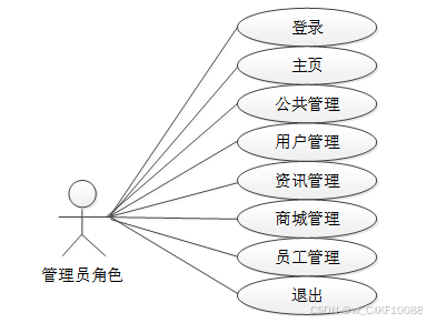 后台管理上的管理员是维护整个超市售卖管理系统中所有数据信息的。管理员角色用例如图3-4所示。