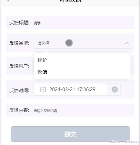 用户在“评价反馈”页面可输入反馈内容、选择反馈类型和时间进行提交个人反馈信息,如图5-6所示。