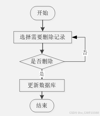 管理员可以对高校流浪动物保护小程序管理等进行信息的删除,对要删除的信息进行选中后,点击删除按钮,系统会询问是否确定,若点击确定,则系统会删除掉选中的信息,并在数据库内对信息进行删除,删除信息流程图如图3-3所示。