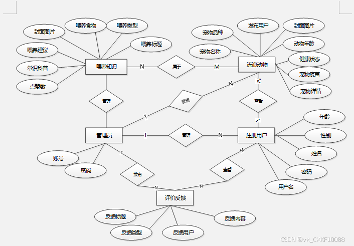 (1) 高校流浪动物保护小程序整体E-R图,如图4-4所示: