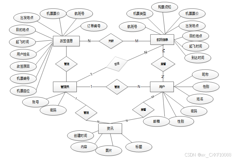 下面是整个航空票务管理系统中主要的数据库表总E-R实体关系图。