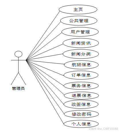 管理员是维护整个航空票务管理系统中所有数据信息的。管理员角色用例如图2-5所示。
