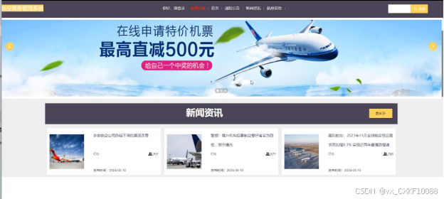 (4)航班信息:当用户点击“航班信息”这一菜单按钮,会显示管理员在后台发布的所有的航班信息,可以查看详情,进行购票、收藏、点赞、评论等;