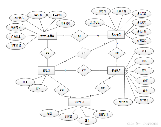 下面是整个旅游网的设计与实现中主要的数据库表总E-R实体关系图。