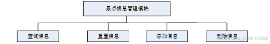 景点信息管理模块是本系统中的重要功能之一。该模块的设计旨在提供对景点信息的发布、编辑、删除和查看等管理功能,以便及时、准确地向系统用户发布相关的景点信息。其模块功能结构,具体的结构图如下3-4所示: