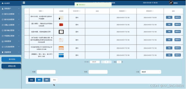 资讯分类: 管理图书资讯的分类信息,确保资讯的整体管理和整理。