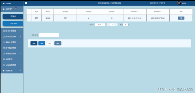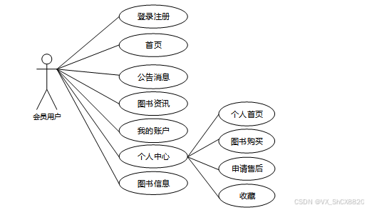 系统采用Web技术和Spring Boot框架进行开发,实现了会员用户和管理员两种角色的功能需求。会员用户可以通过系统进行登录注册、浏览图书资讯、查看图书详细信息、购买图书、申请售后以及收藏图书等操作。管理员则通过后台管理系统进行用户管理、图书分类管理、图书信息管理、采购入库管理、图书购买管理、申请售后管理、系统管理、公告消息管理以及资源管理等操作,确保书店运营的高效和顺畅。