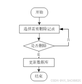 管理员可以对公告消息、图书资讯、图书信息等进行信息的删除,对要删除的信息进行选中后,点击删除按钮,系统会询问是否确定,若点击确定,则系统会删除掉选中的信息,并在数据库内对信息进行删除,删除信息流程图如图2-6所示。