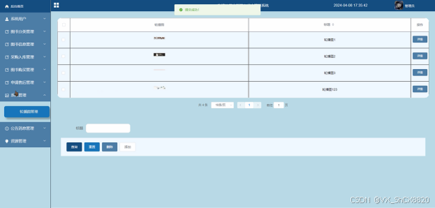 轮播图管理: 管理系统首页轮播图信息,包括添加、编辑和删除图片等。