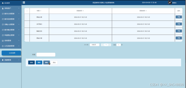 公告消息管理: 管理系统发布的公告消息,包括添加、编辑和删除等操作。