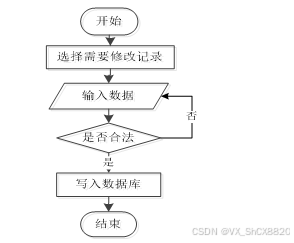 管理员可以对公告消息、图书资讯、图书信息等进行的修改,用户可以对自己权限内的信息进行修改,首先进入修改信息界面,输入修改信息数据,系统进行数据的判断验证,修改信息合法则修改成功,信息更新至数据库,信息不合法则修改失败,重新输入。修改信息流程图如图2-5所示。