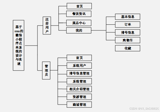 微信小程序点单系统分为两大部分:管理员模块、注册用户模块。
