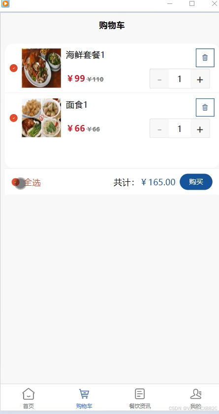 购物车:用户可以在购物车模块查看自己的点餐清单,包括菜品、数量、总金额等,方便用户确认和提交订单。