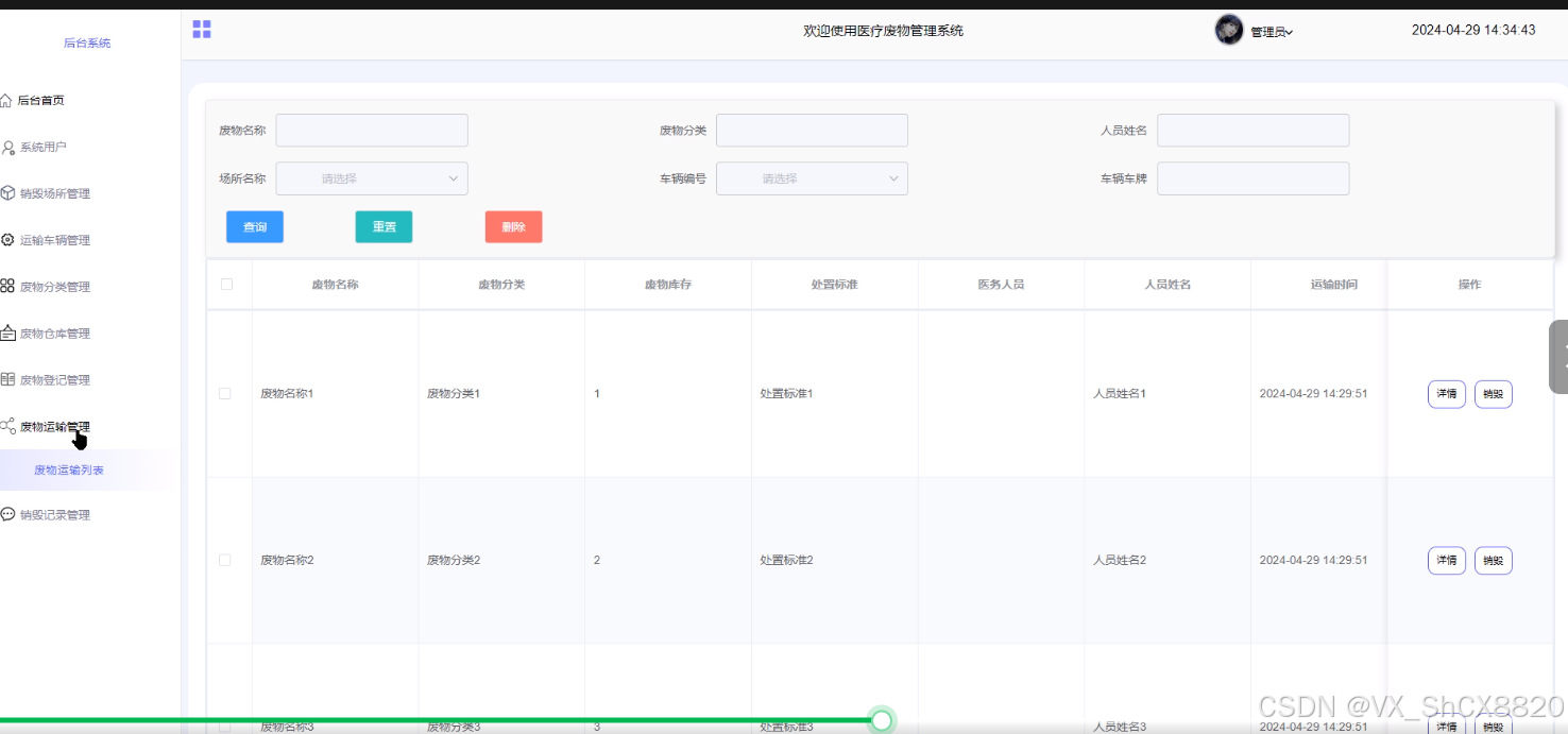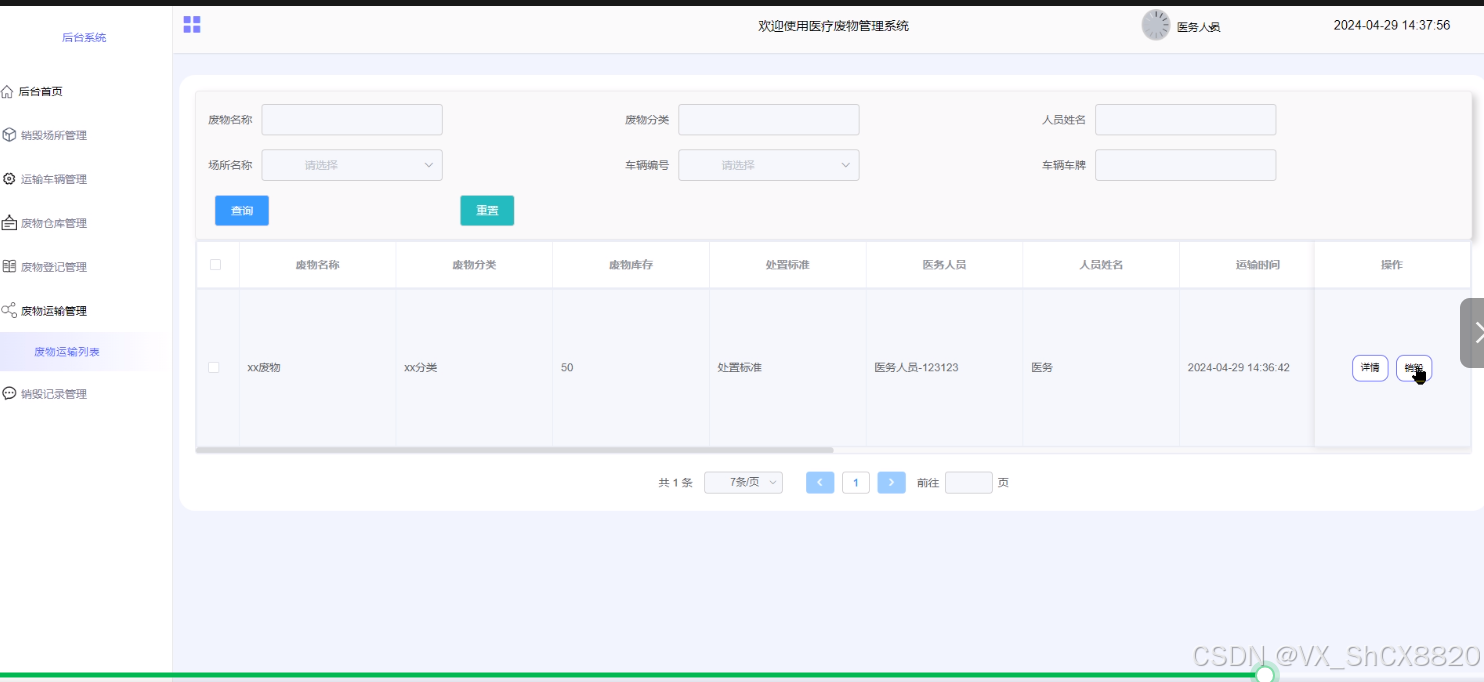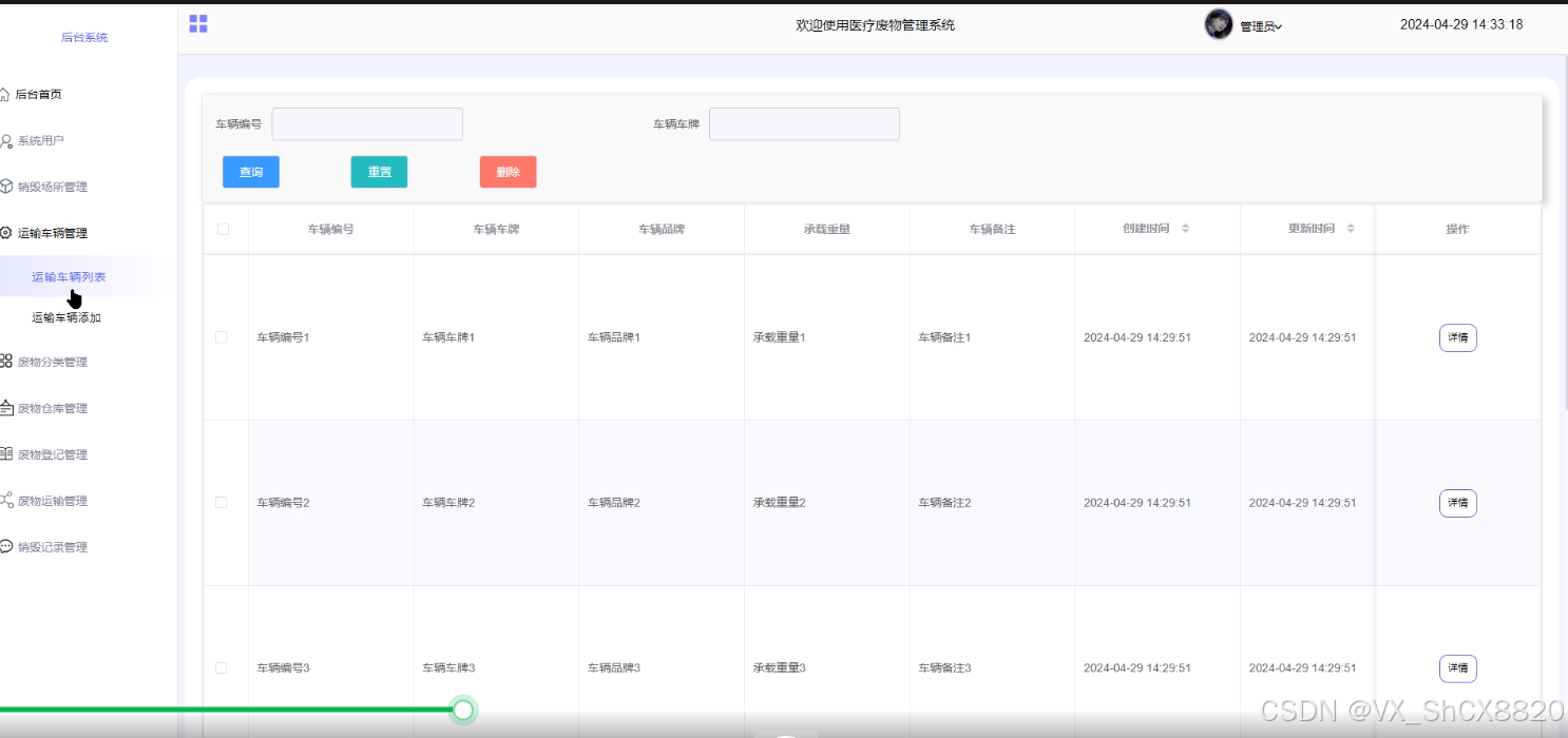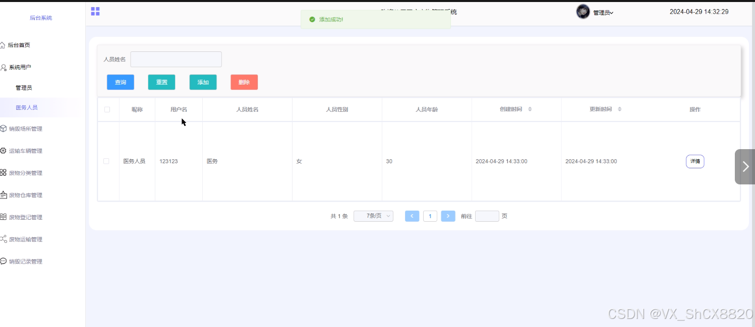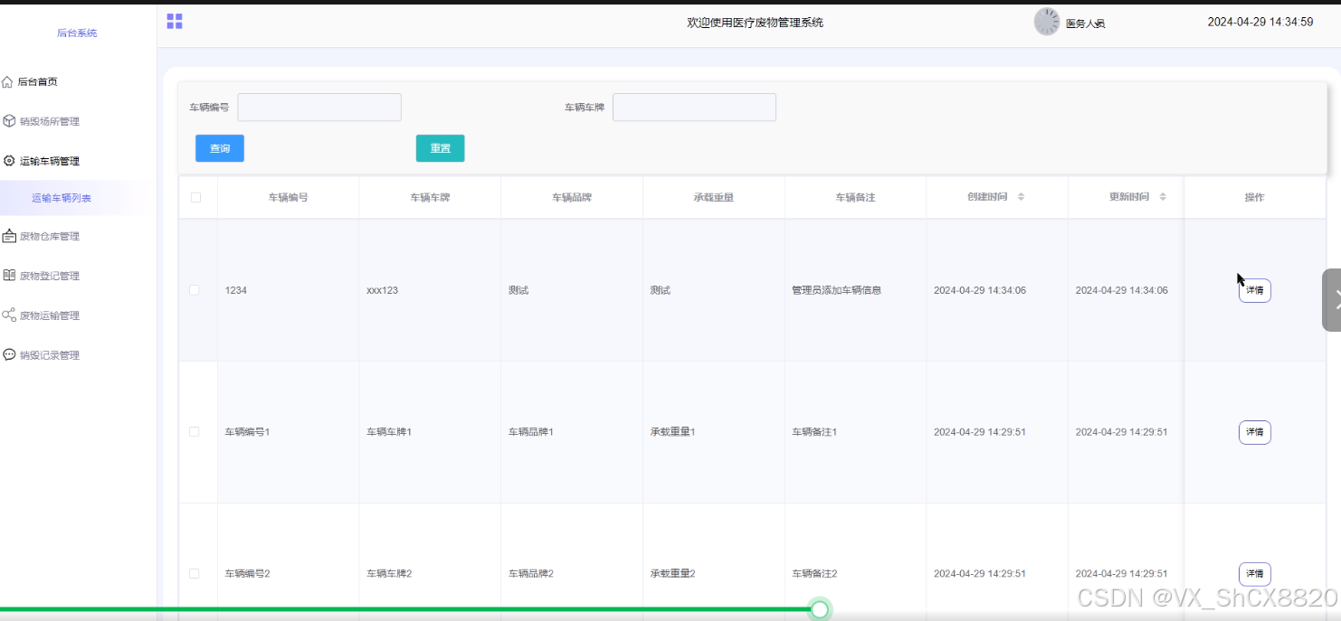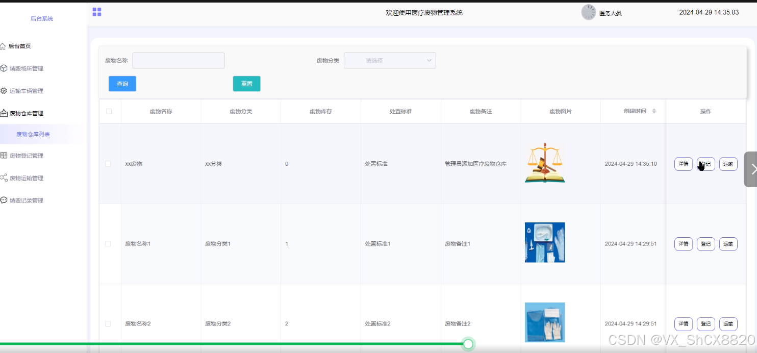 In summary, the medical waste management system based on Spring Boot and Vue integrates advanced information technology and intelligent management methods to achieve modernization and efficiency in medical waste management, providing strong support for improving the environmental protection level and sustainable development of the medical industry.