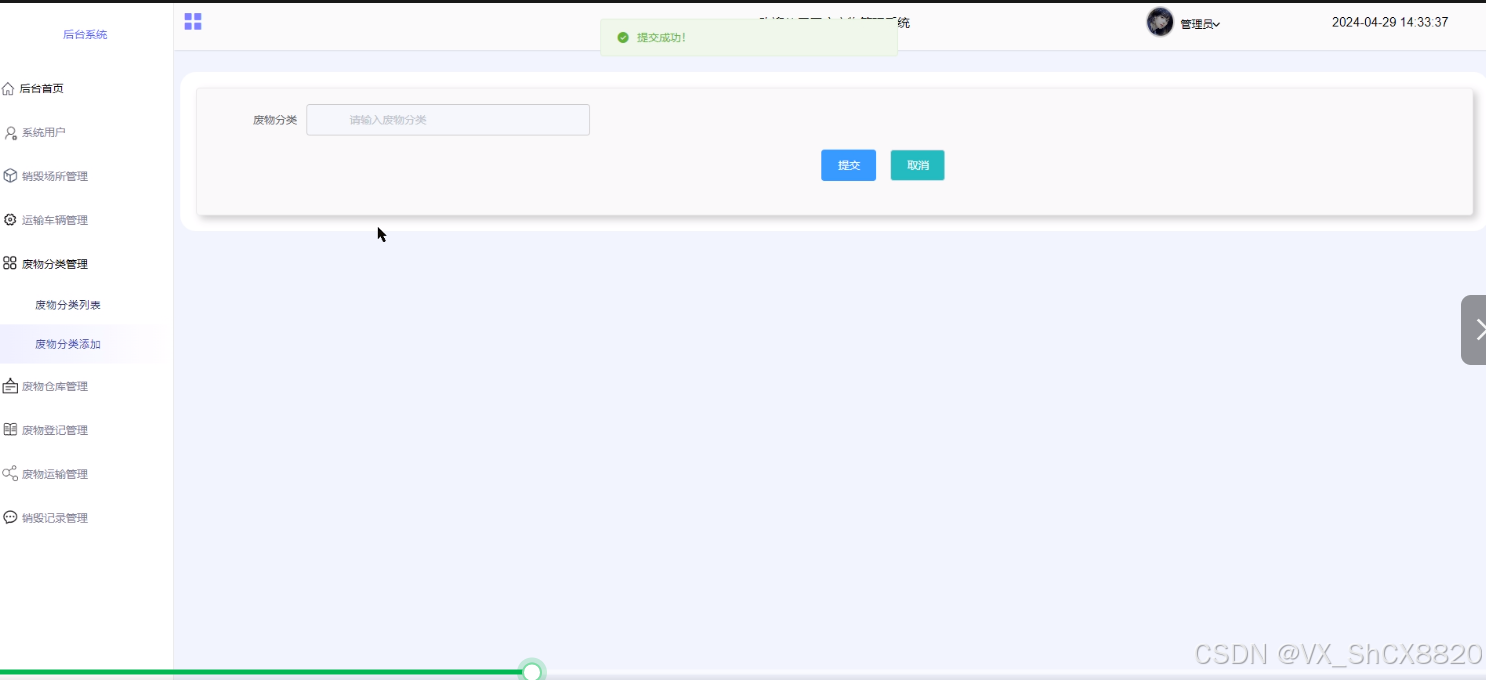 管理员可以管理废物分类信息,包括添加新的废物分类、修改分类信息、删除分类等操作。界面如下图4-9所示。