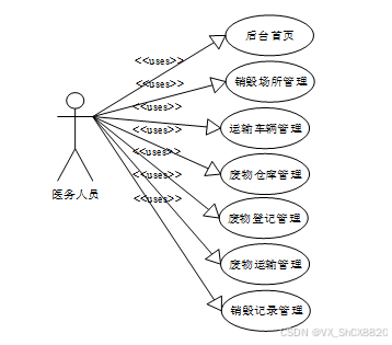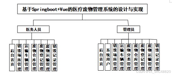 医疗废物管理系统经过设计,划分为医务人员管理模块和管理员模块这两大模块。