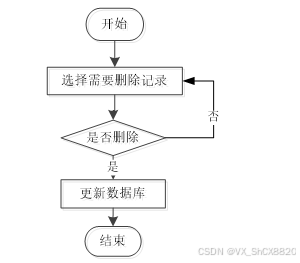 用户可选择要删除的信息进行信息删除操作,在删除信息时系统提示是否确定删除信息,是则删除信息成功,系统数据库将信息进行删除。删除信息流程图如图2-6所示。
