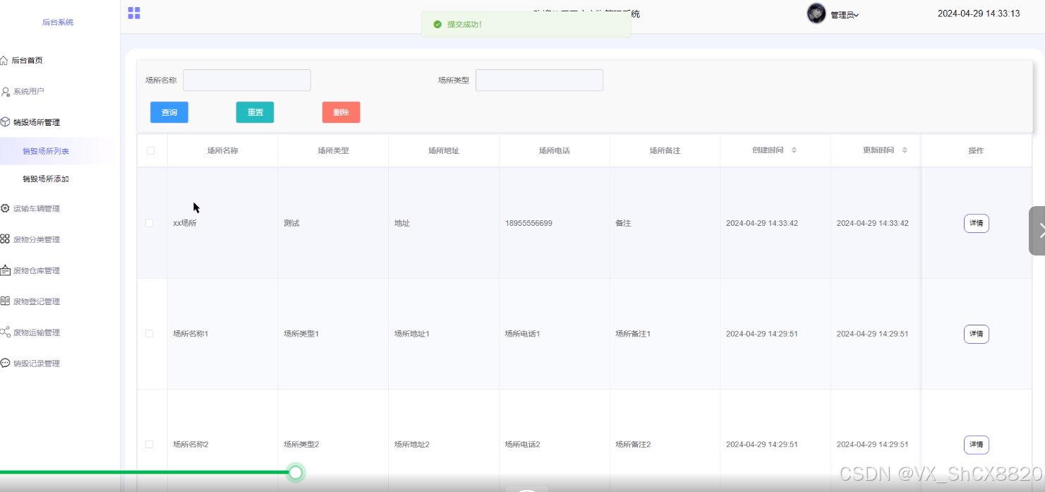 销毁场所管理:管理员需要能够管理各个销毁场所的信息,包括位置、容量、设施情况等,以便进行合理的废物销毁安排。