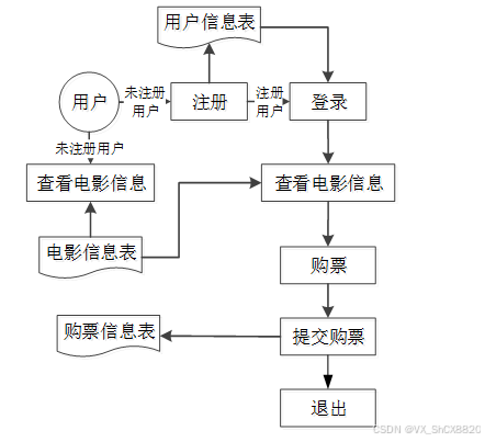 用户可以查看电影的名称、类型、导演、演员阵容、剧情简介等相关信息。用户可以根据电影信息选择感兴趣的电影,并了解电影的背景和故事情节。电影信息功能为用户提供了方便的途径来浏览和了解各种电影,帮助用户做出选择并享受更好的电影观影体验。具体的流程图和实现界面如下: