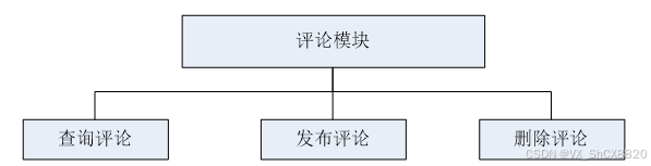 该模块主要包括用户对电影进行评论、查看评论等功能。用户可以在观影后对电影进行评价和发表评论,同时可以查看其他用户的评论。管理员可以对评论进行审核、删除不合规的评论,并根据评论反馈进行电影评分和推荐。评论管理模块的设计旨在提供用户交流和互动的平台,促进用户参与度和增加电影的口碑效应。其结构图如下所示: