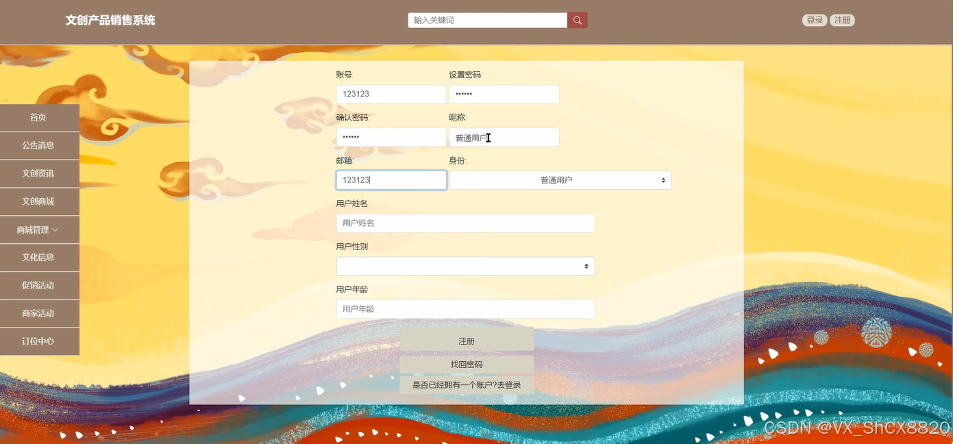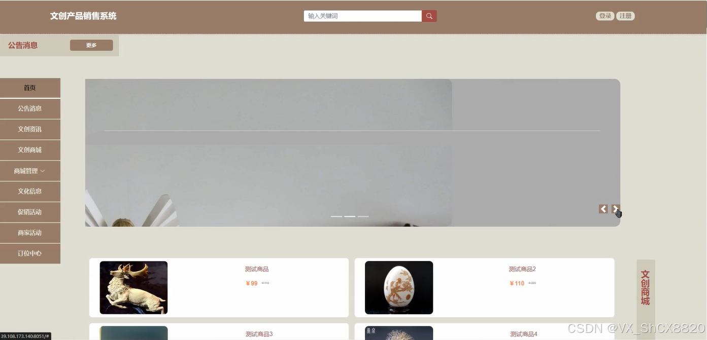 关键词:SSM;JavaWeb;MYSQL;文创产品销售系统