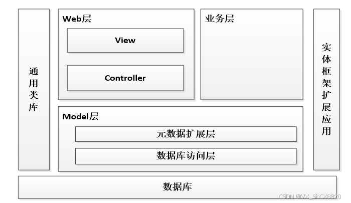 本阅读书店管理系统的架构设计采用了经典的3层架构,包括Web层、业务层和Model层。其中,Web层进一步细分为View层和Controller层,而Model层则包含了元数据扩展层和数据访问层。