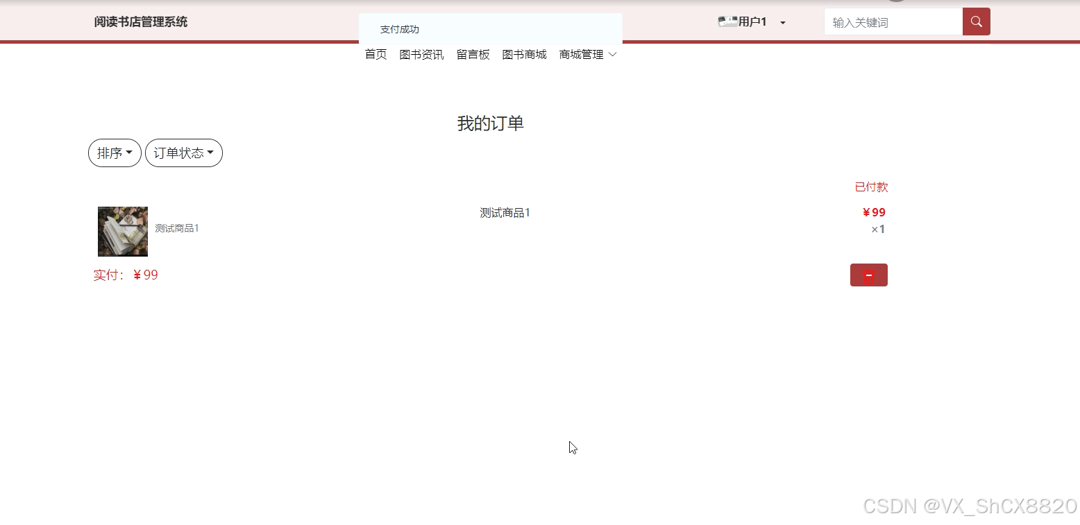 (9)订单列表:点击“订单列表”可以查看到用户购买的我的图书订单,对提交的订单进行管理。