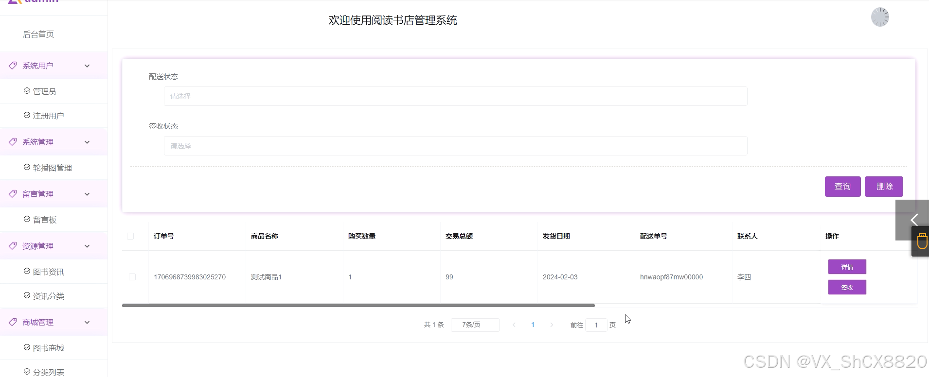 订单管理界面如下图所示。