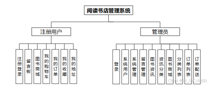 阅读书店管理系统总体分为注册用户模块、后台管理员模块。