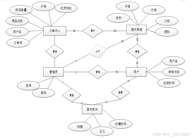 下面是整个阅读书店管理系统中主要的数据库表总E-R实体关系图。