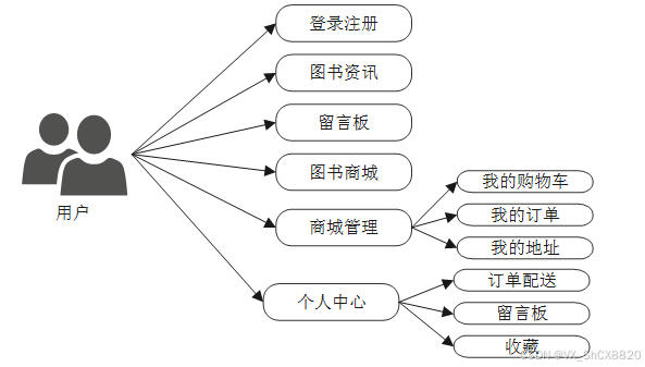 按照阅读书店管理系统的角色,我划分为了普通用户管理模块和管理员管理模块这两大部分。