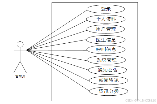帮助老人健康管理小程序中管理员角色用例图如图2.3所示: