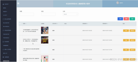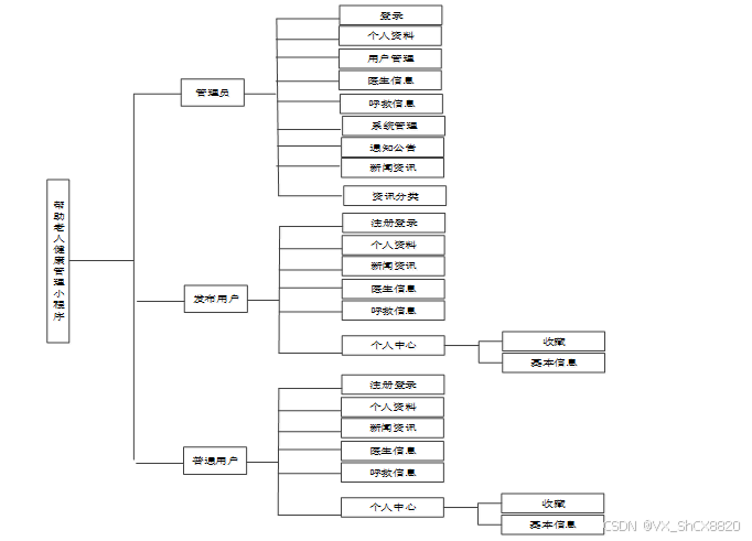 帮助老人健康管理小程序的设计与实现是为了让系统的使用者更加方便的进行管理老人健康相关联的一些信息,使用者查找管理的时候能够节省大量的时间和精力,有效减少不必要的查找时间。系统在功能上划分为后台管理员、小程序普通用户+小程序发布用户三大部分。