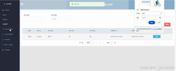 (2)用户管理:管理员可以对系统中所有的用户角色进行管控,包含了管理员+普通用户+发布用户这三种角色,如果需要添加新的用户,点击页面中的“添加”按钮根据提示输入上用户信息,点击“提交”以后在对应的用户界面就可以查看到了,可以点击用户后面的“删除”按钮直接删除某一用户。