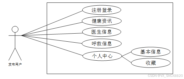 帮助老人健康管理小程序发布用户角色用例图如图2.2所示: