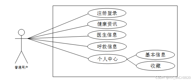 帮助老人健康管理小程序中普通角色用例图如图2.1所示: