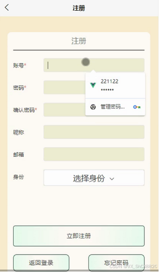 (1)注册登录:当访客想要对系统中所实现的功能进行查询管理的时候,就必须进行登录到系统当中,如果没有账号的话,在登录界面,点击“注册”按钮就会跳转到注册的界面,根据提示填写好注册信息,添加提交,用户的信息在数据库中就添加完成了,然后再输入填写好的账号和密码进行登录;