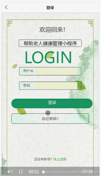 关键词:帮助老人健康管理小程序;微信小程序;ssm;MYSQL