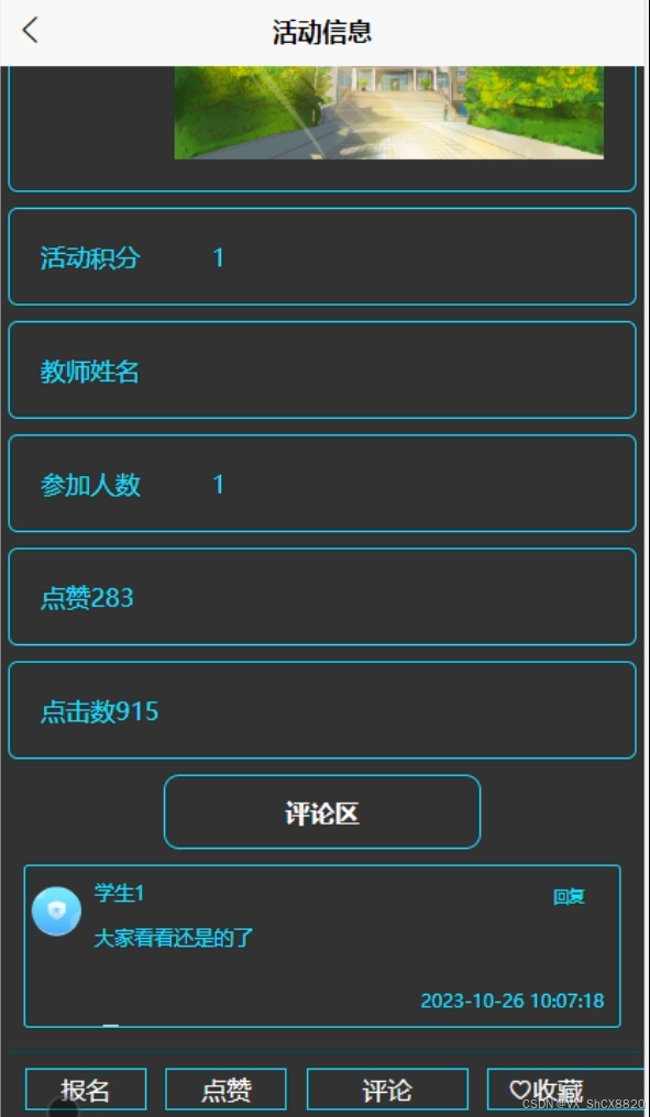 在实现活动信息管理模块时,有几个关键方面需要考虑。首先是活动的创建和编辑。管理员或教师用户应该能够轻松地创建新的活动,并提供必要的信息,如活动名称、时间、地点、描述等。此外,还应该提供编辑功能,以便在需要时更新活动信息。活动的展示和搜索。系统应该提供一个界面,以清晰地展示所有活动的信息,并允许用户根据不同的条件进行搜索和筛选。例如,用户可以按照活动类型、时间范围或地点来查找感兴趣的活动。这有助于提供更好的用户体验和帮助用户快速找到所需的活动。