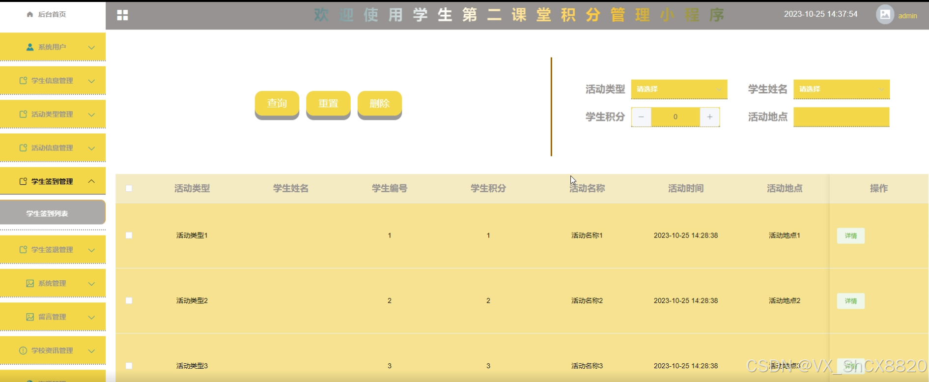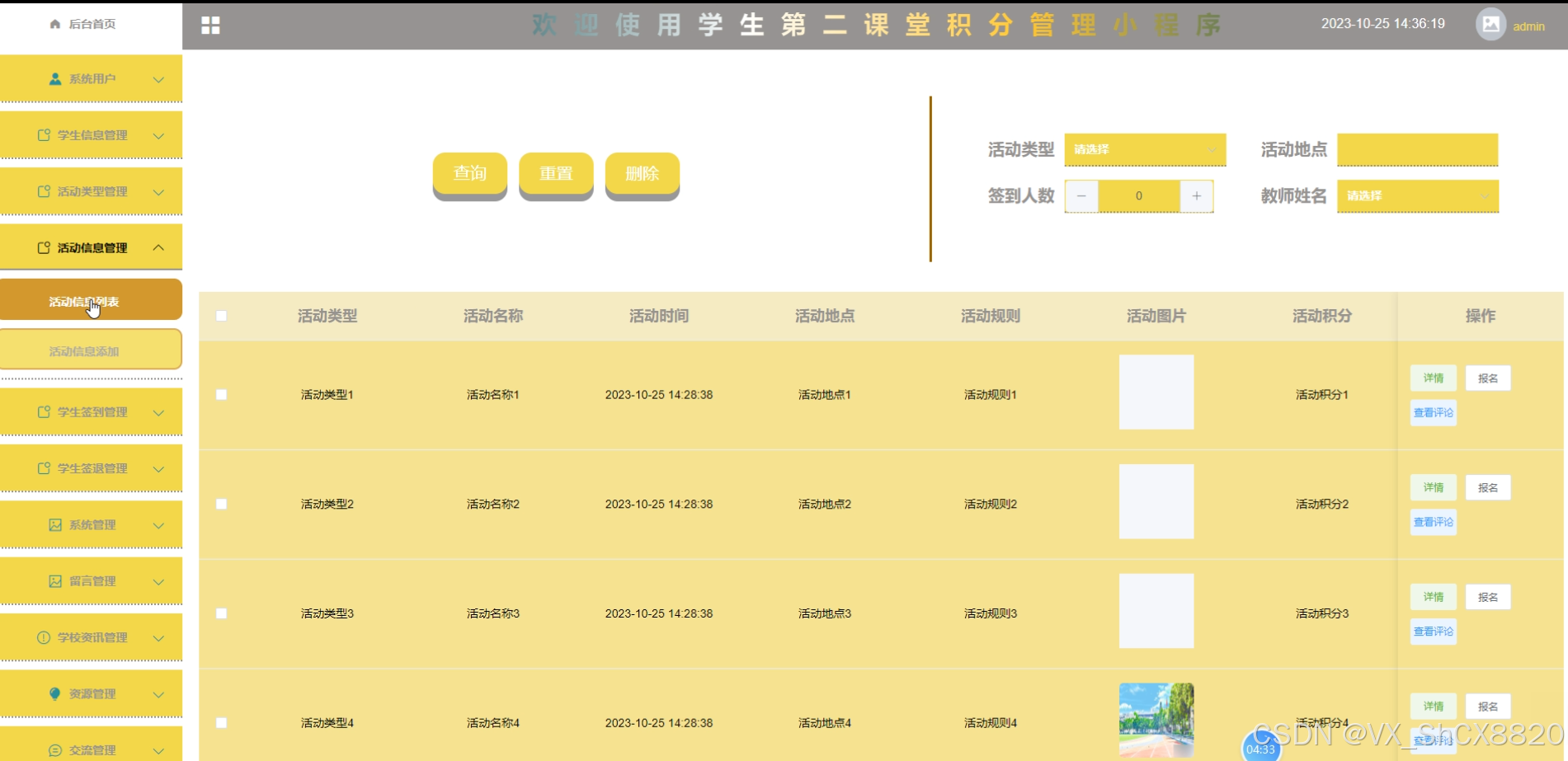 活动信息管理界面如下图所示。