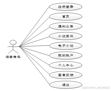 阅读创作平台中根据读者用户的需求可以分为一下功能模块。
