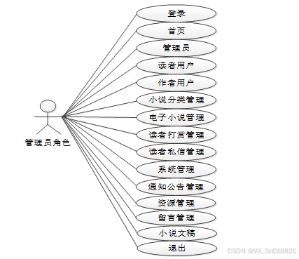 web后台管理上的管理员是维护整个阅读创作平台中所有数据信息的。管理员角色用例如图3-2所示。