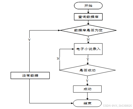 添加电子小说时,小说编号自动生成,系统会对添加的小说进行验证,验证通过则添加至数据库,添加小说成功,反之添加失败。添加小说信息流程如图3-4所示。